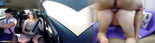 07:37Stunning blonde angel Ria Sunn fucks mischievous boy in his car